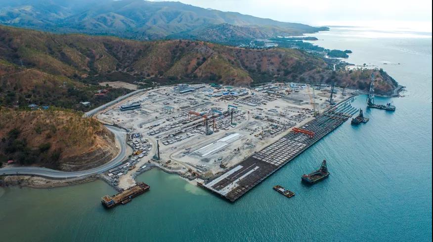 東帝汶帝巴灣新集裝箱碼頭項(xiàng)目碼頭施工現(xiàn)場(chǎng)