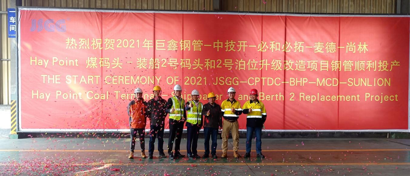 在這金桂飄香,秋風(fēng)送爽、萬(wàn)里晴空的時(shí)節(jié)。11月3日,在古城揚(yáng)州,巨鑫鋼管-中技開(kāi)-必和必拓-麥德-尚林承接澳大利亞第二大煤炭輸出港Hay Point 煤碼頭–裝船2號(hào)碼頭和2號(hào)泊位升級(jí)改造項(xiàng)目鋼管順利投產(chǎn)。