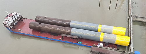 江蘇巨鑫制作的最高鋼級(jí)海上風(fēng)電鋼管樁順利發(fā)運(yùn)中國(guó)鐵港航局大連莊河項(xiàng)目