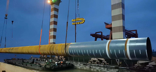 中鐵大橋局汕頭牛田洋項目螺旋鋼管樁,規(guī)格為φ3350×25/36mm、φ3144×22mm、φ2840×20mm ,材質(zhì)為Q355C,單支最長37.9米,總重量約18000噸。鋼管樁樁頂以下15米范圍進行防腐處理,防腐采用熔結(jié)環(huán)氧粉末工藝,防腐厚度為500μm。由于我司已有五年以上大口徑螺旋和直縫鋼管樁的生產(chǎn)經(jīng)驗,生產(chǎn)工藝技術(shù)非常成熟,生產(chǎn)員工也有豐富的實際工作經(jīng)驗,產(chǎn)品質(zhì)量穩(wěn)定可靠,已經(jīng)持續(xù)供貨12船鋼管樁,用戶非常滿意。