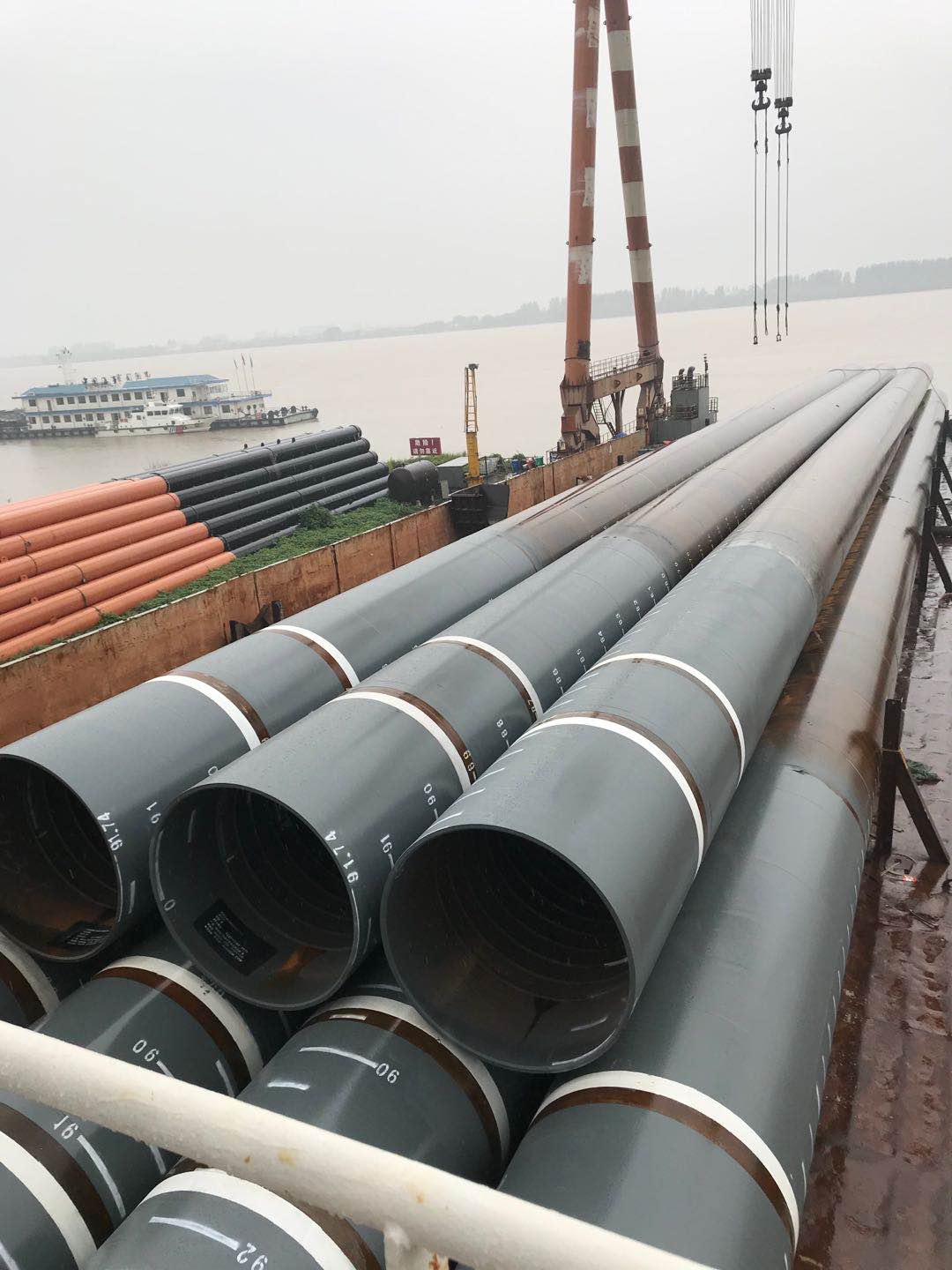 巨鑫鋼管車間內(nèi)廣州打撈局中節(jié)能、三峽海上風(fēng)電原材料整齊劃一